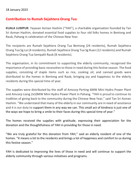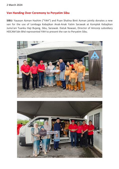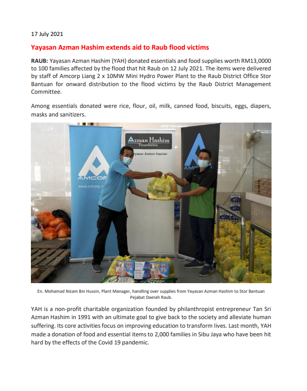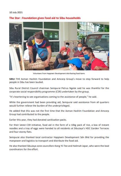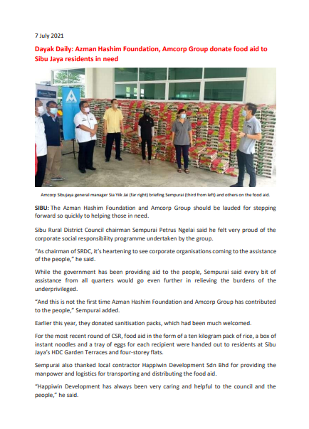 Dayak Daily : Azman Hashim Foundation, Amcorp Group donate food aid to Sibu Jaya residents in need
