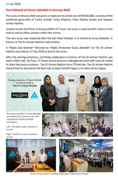 Doa Selamat at Surau Zabedah in Amcorp Mall