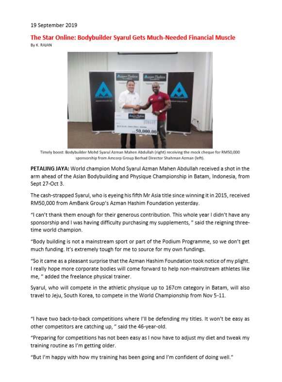The Star Online : Bodybuilder Syarul Gets Much-Needed Financial Muscle