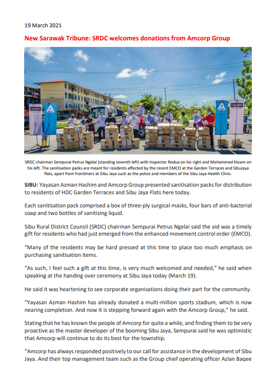 New Sarawak Tribune : SRDC welcomes donations from Amcorp Group