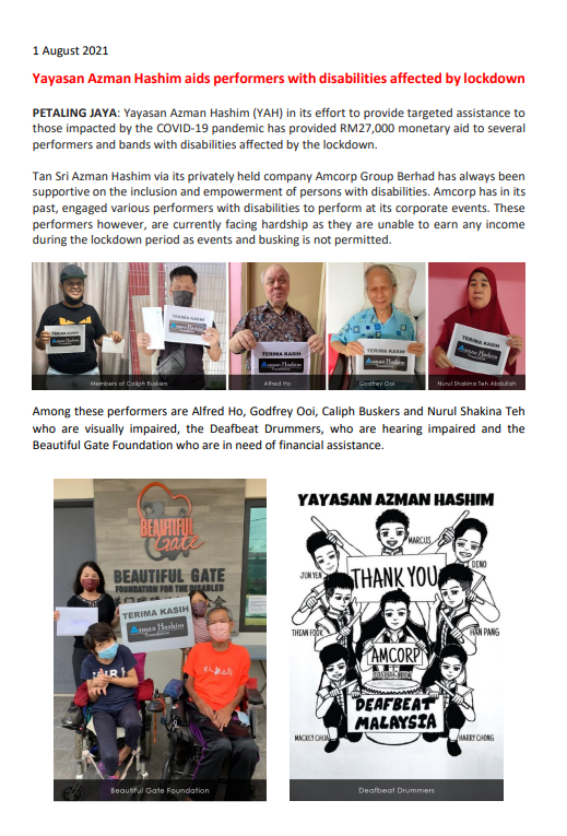Yayasan Azman Hashim aids performers with disabilities affected by lockdown