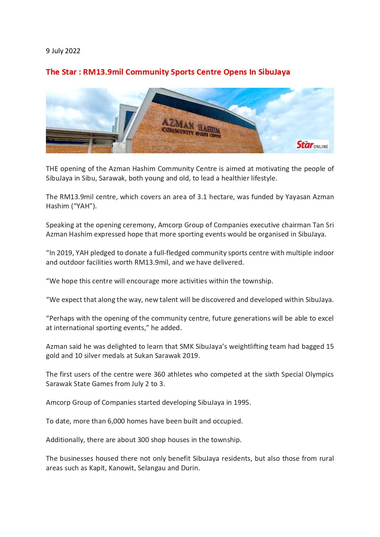 The Star : RM13.9mil Community Sports Centre Opens In SibuJaya