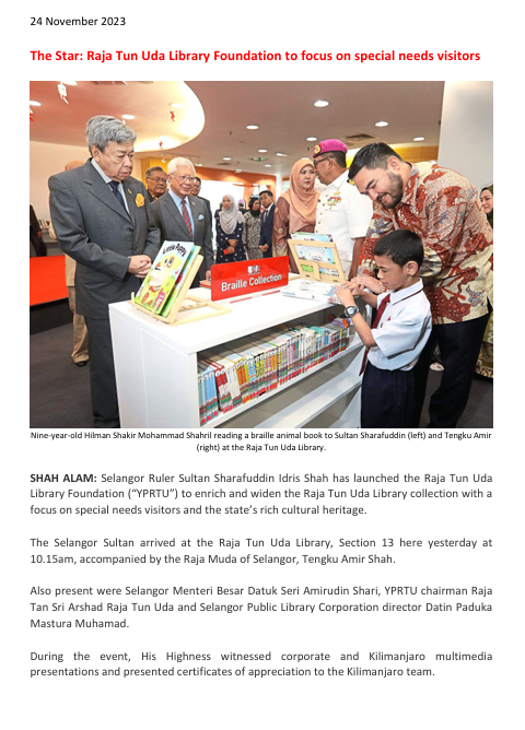 The Star: Raja Tun Uda Library Foundation to focus on special needs visitors