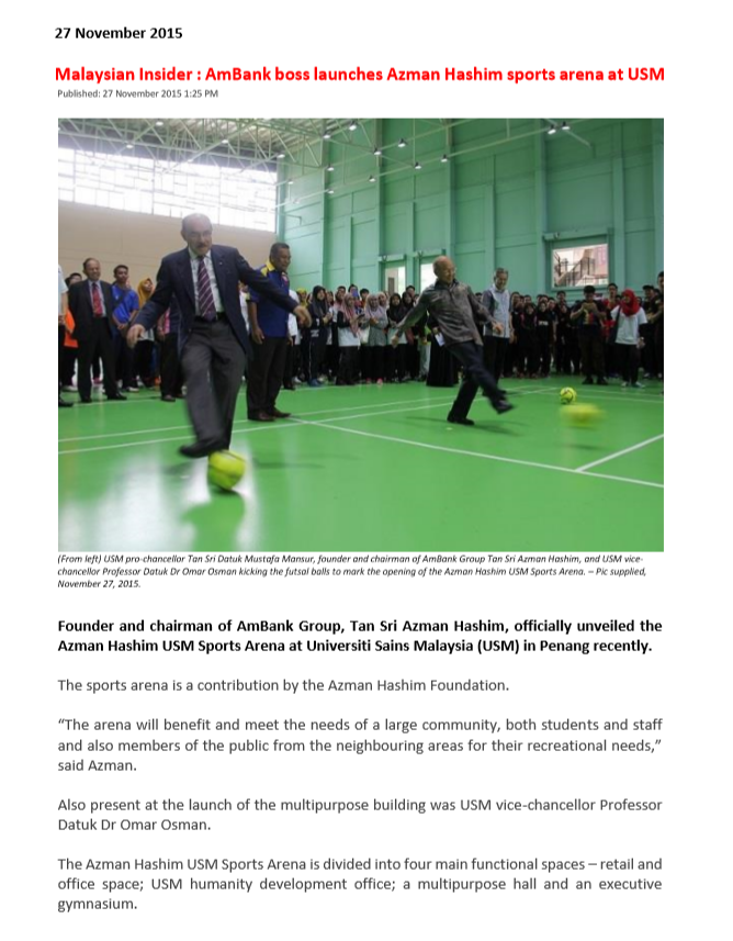 Malaysian Insider : AmBank boss launches Azman Hashim sports arena at USM